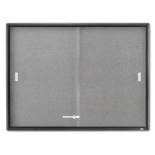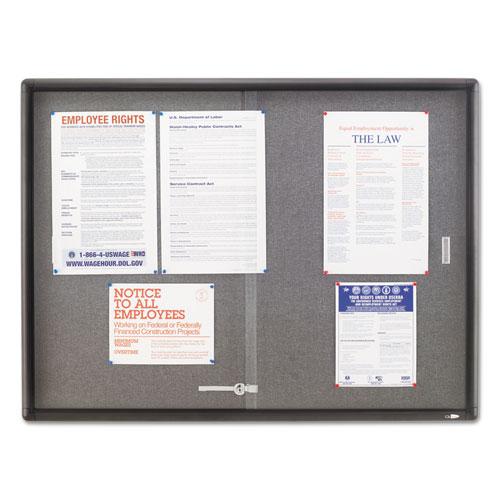 Enclosed Bulletin Board, Fabric/Cork/Glass, 48 x 36, Gray, Aluminum Frame