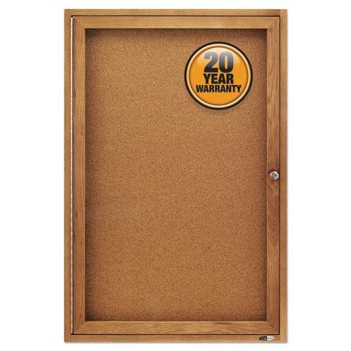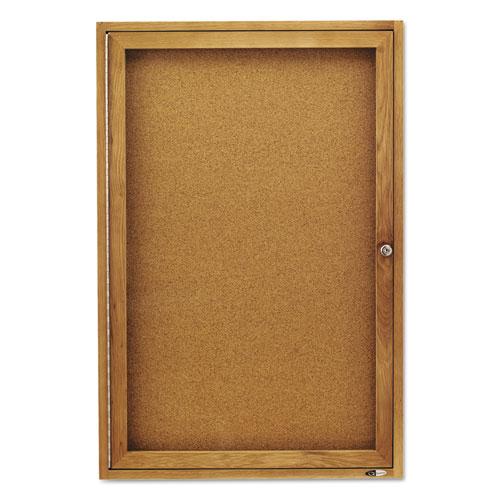 Enclosed Bulletin Board, Natural Cork/Fiberboard, 24 x 36, Oak Frame
