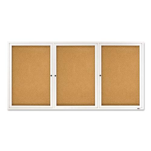 Enclosed Bulletin Board, Natural Cork/Fiberboard, 72 x 36, Silver Aluminum Frame
