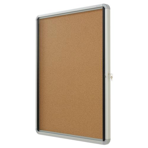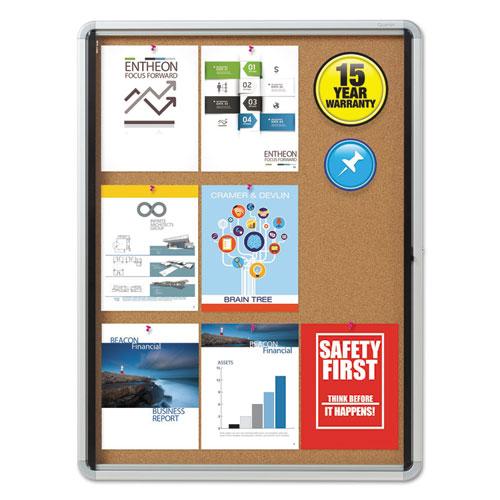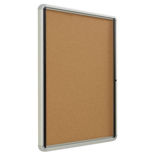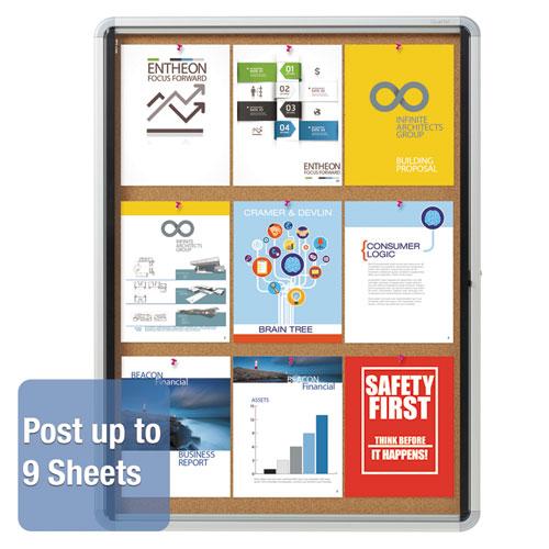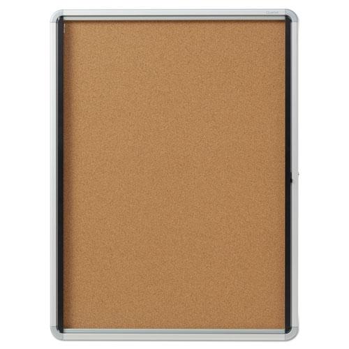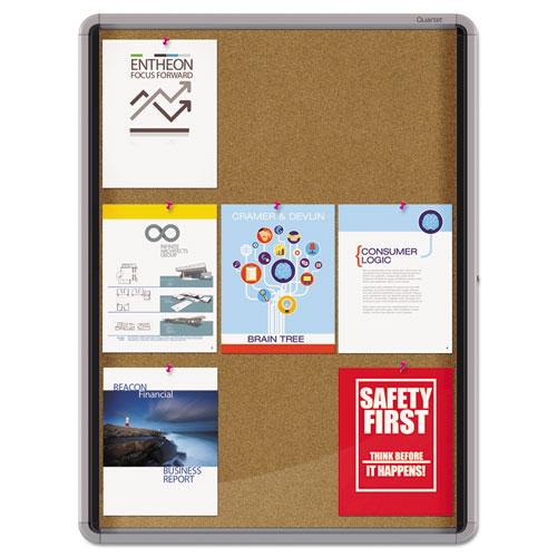 - Internal, enclosed board features a durable and classic cork surface ideal for posting printed materials.