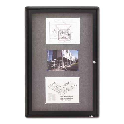 - Durable fabric, enclosed bulletin board backed by high-density fiberboard secures documents tight.