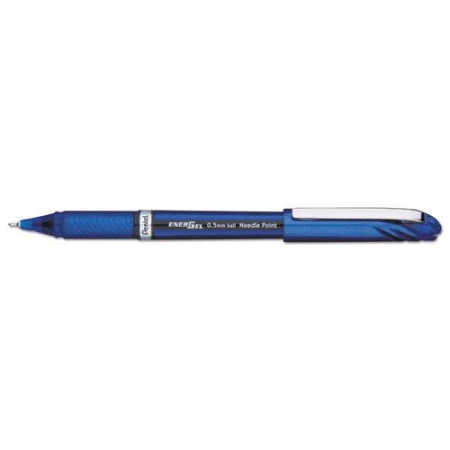 EnerGel NV Stick Gel Pen, 0.5mm Needle Tip, Blue Ink/Barrel, Dozen