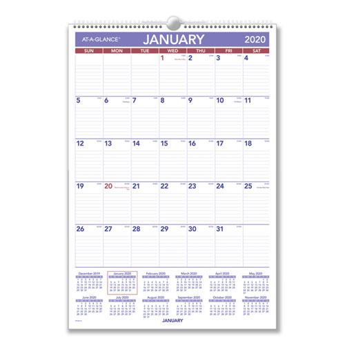 Erasable Wall Calendar, 15 1/2 x 22 3/4, White, 2019