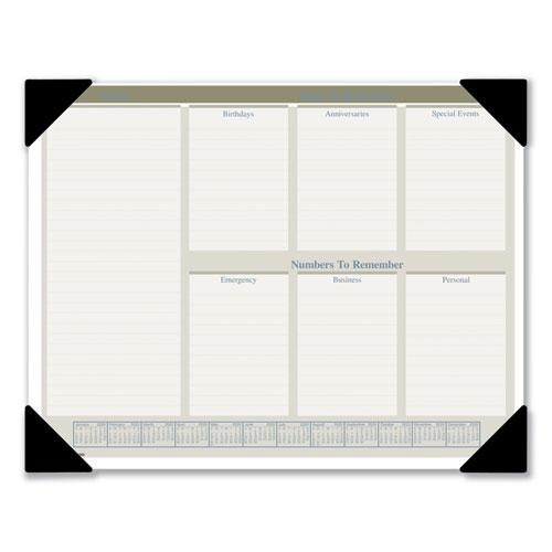 - Four black poly corners securely hold each month’s calendar in place.
