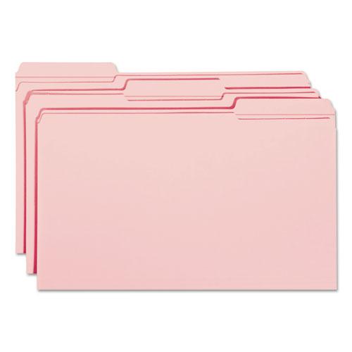 File Folders, 1/3 Cut, Reinforced Top Tab, Legal, Pink,100/Box