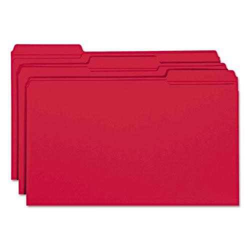File Folders, 1/3 Cut, Reinforced Top Tab, Legal, Red, 100/Box