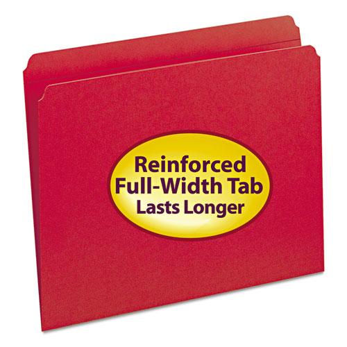 File Folders, Straight Cut, Reinforced Top Tab, Letter, Red, 100/Box