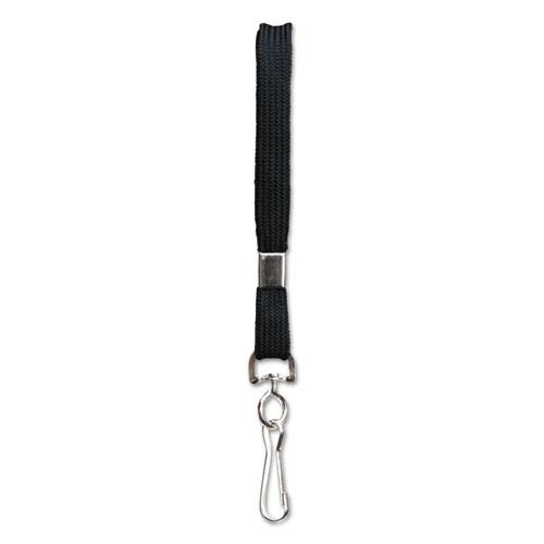 Flat Lanyard w/Hook, 36″, Nylon, Black, 100/Pack