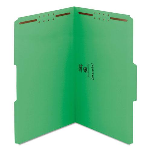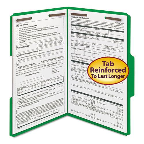 Folders, Two Fasteners, 1/3 Cut Assorted Top Tab, Legal, Green, 50/Box
