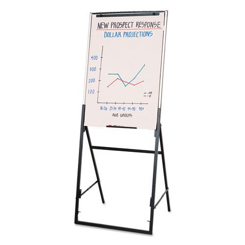 - Adjustable 67″ easel features a smooth whiteboard writing surface and includes a flipchart holder.