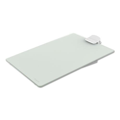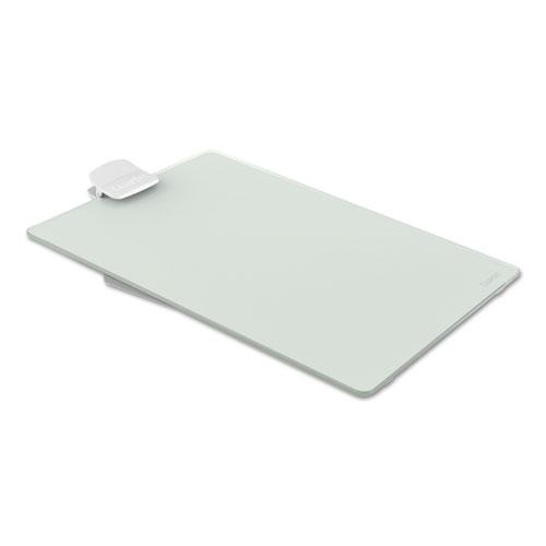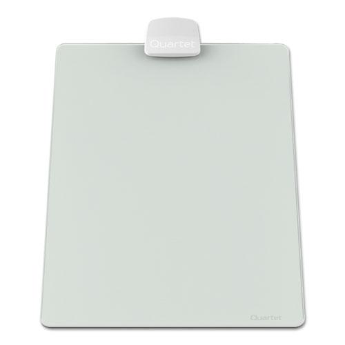 - White glass dry-erase easel board is infinitely reusable and replaces the need for scrap paper.