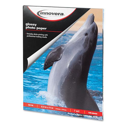 Glossy Photo Paper, 7 mil, 8 1/2 x 11, Glossy White, 50/PK