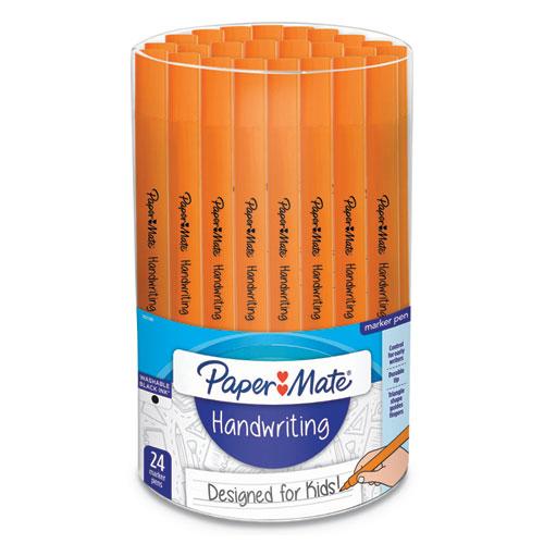 Handwriting Triangular Plastic Point Pen, 0.7mm, Black Ink, Orange Barrel, 24/Pack