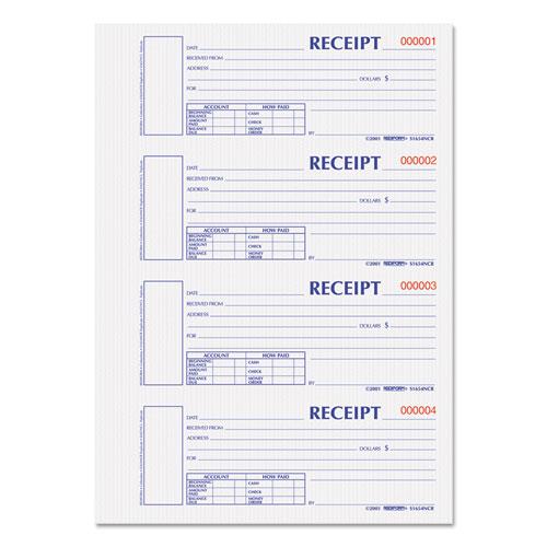 Hardcover Numbered Money Receipt Book, 6 7/8 x 2 3/4, Two-Part, 300 Forms