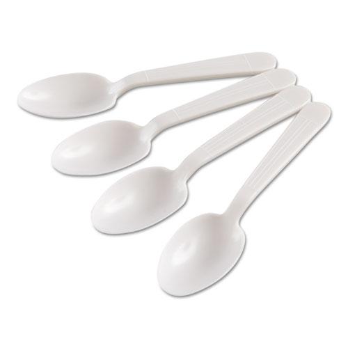 Heavyweight Cutlery, Teaspoons, Polypropylene, White, 1000/Carton