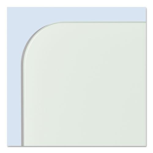 • Frameless design features rounded corners and includes a hidden tray to store markers, erasers, and accessories.