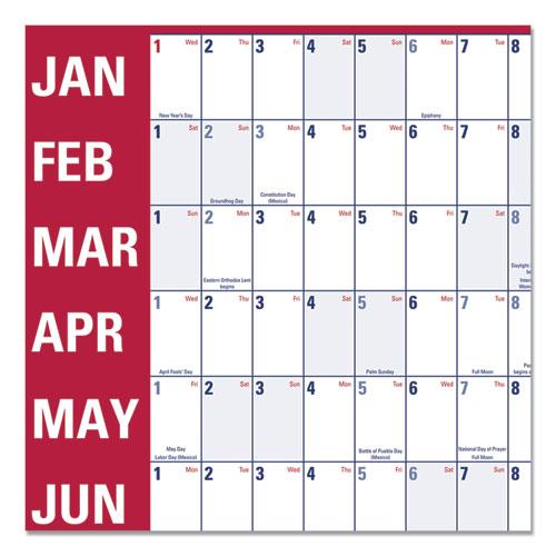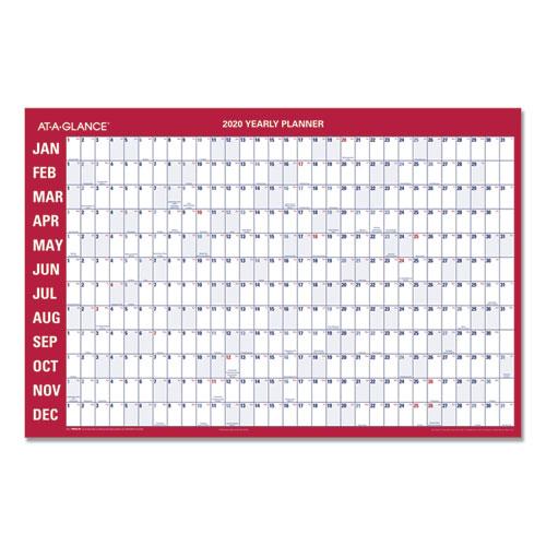 Horizontal Erasable Wall Planner, 36 x 24, White/Red, 2019