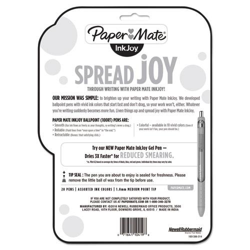InkJoy 100 RT Retractable Ballpoint Pen, 1mm, Assorted Ink/Barrel, 20/Pack