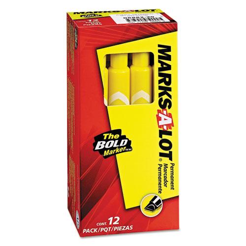 MARKS A LOT Large Desk-Style Permanent Marker, Medium Chisel Tip, Yellow, Dozen