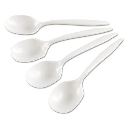 Medium-Weight Cutlery, Soup Spoon, White, 6 1/4″, Plastic, Wrapped, 1000 Carton