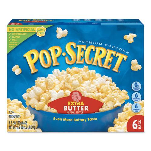 Microwave Popcorn, Extra Butter, 3.2oz Bags, 6/Box