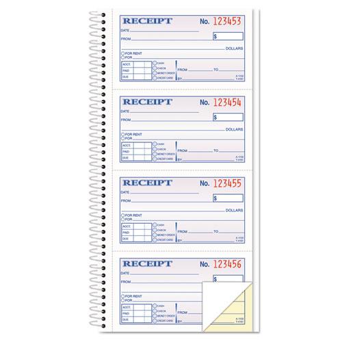 Money/Rent Receipt Spiral Book, 2-3/4 x 4 3/4, 2-Part Carbonless, 200 Sets/Book