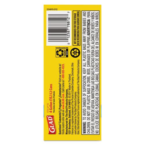 - Handle daily office and everyday demands with Glad’s small sized 4 gallon garbage bag.