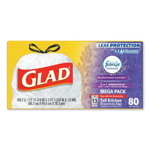 OdorShield Tall Kitchen Drawstring Bags, Lavender Breeze, 13 gal, White, 80/Box