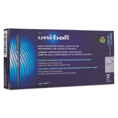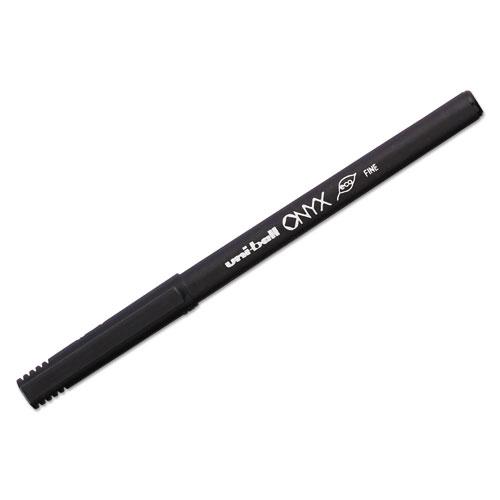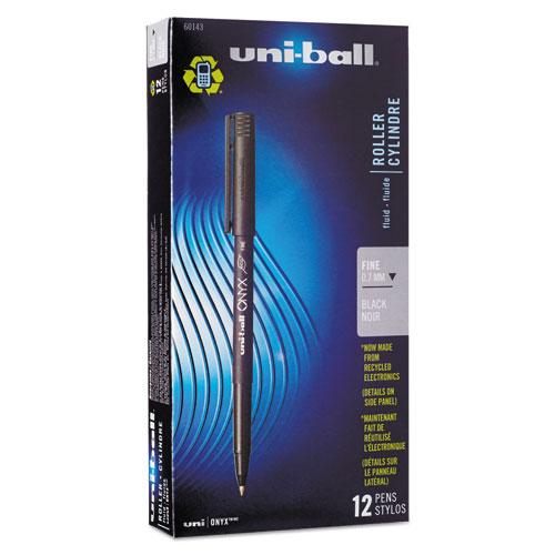 ONYX Stick Roller Ball Pen, Fine 0.7mm, Black Ink, Black Matte Barrel, Dozen