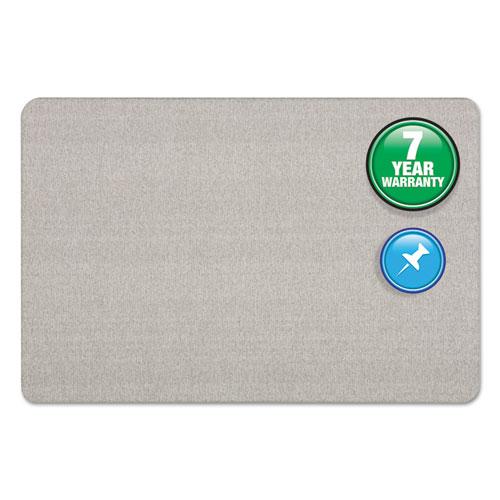 - Durable frameless bulletin board, backed by high-density fiberboard, provides an edge-to-edge posting surface where documents may be secured firmly.