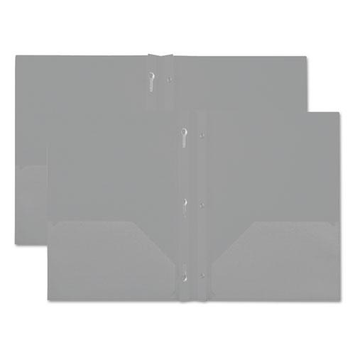 Plastic Twin-Pocket Report Covers with 3 Fasteners, 100 Sheets, White, 10/PK