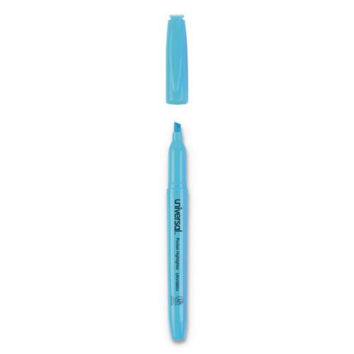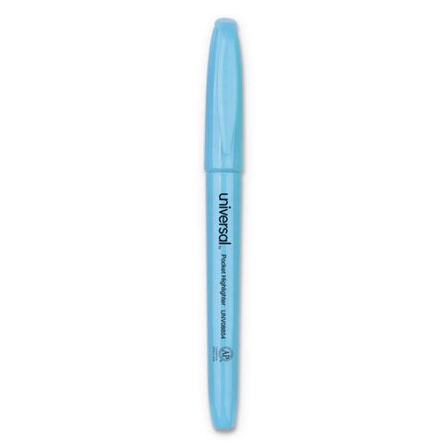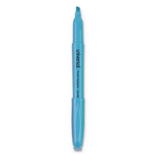 Pocket Clip Highlighter, Chisel Tip, Fluorescent Blue Ink, Dozen