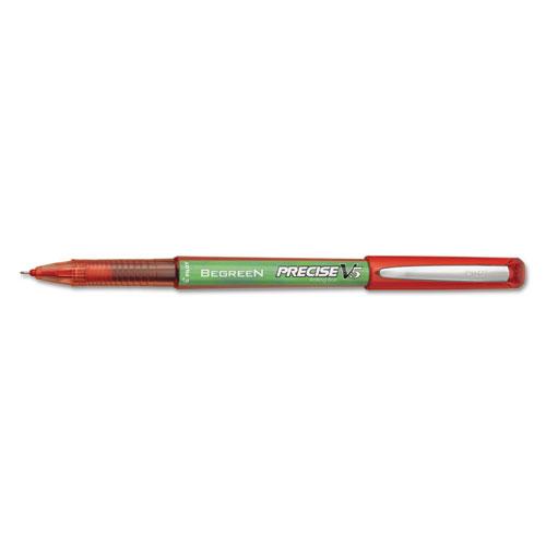 Precise V5 BeGreen Stick Roller Ball Pen, 0.5mm, Red Ink/Barrel, Dozen