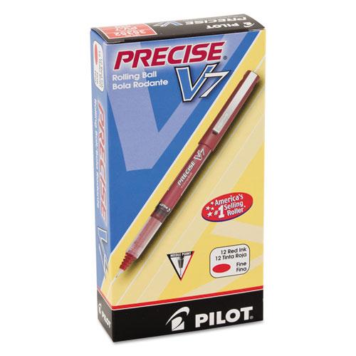 Precise V7 Stick Roller Ball Pen, Fine 0.7mm, Red Ink/Barrel, Dozen