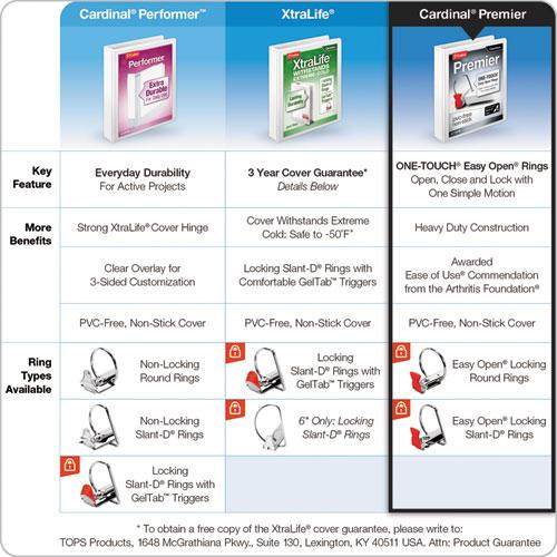 - ONE-TOUCH® Easy Open® rings open, close and lock with one simple motion.