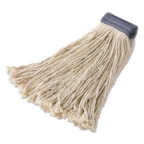 Premium Cut-End Cotton Mop, White, 20 oz, 5″ Blue Headband, 12/Carton