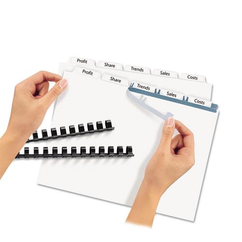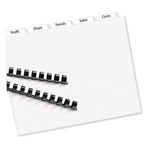 • Choose unpunched tab dividers to create professional-looking customized bound documents right at your desktop.