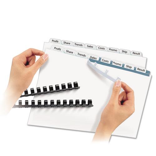 • Choose unpunched tab dividers to create professional-looking customized bound documents right at your desktop.