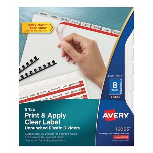 Print and Apply Index Maker Clear Label Unpunched Dividers, 8Tab, Letter, 5 Sets