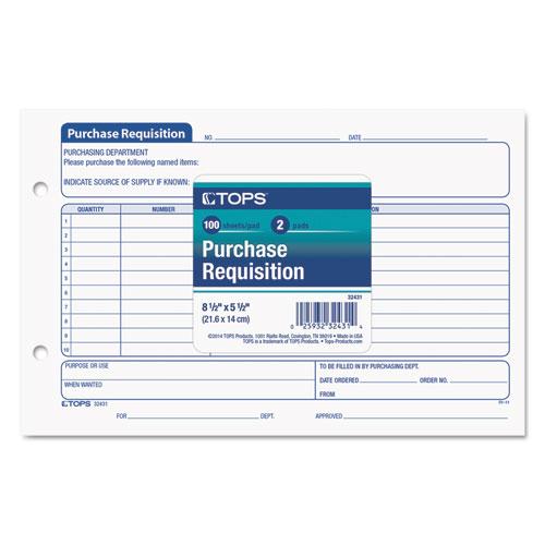 Purchasing Requisition Pad, 5 1/2 x 8 1/2, 100/Pad, 2/Pack