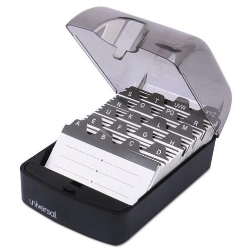 Push-Button Business Card File, Plastic, 4 x 5 3/4 x 2 3/4, Black