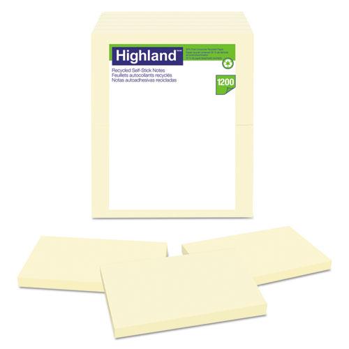 Recycled Self Stick Notes, 3 x 5, Yellow, 100 Sheets/Pad, 12 Pads/Pack