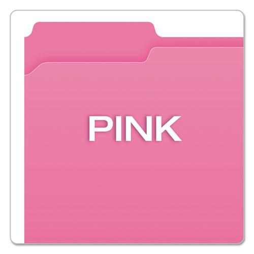 Reinforced Top Tab File Folders, 1/3 Cut, Letter, Pink, 100/Box