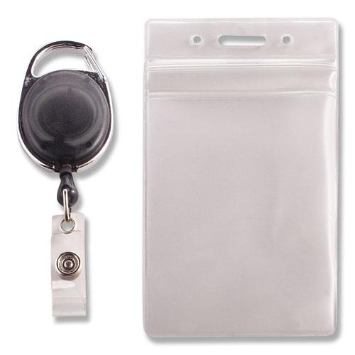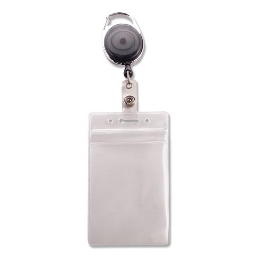 Resealable ID Badge Holder, Cord Reel, Vertical, 2 5/8 x 3 3/4, Clear, 10/Pack