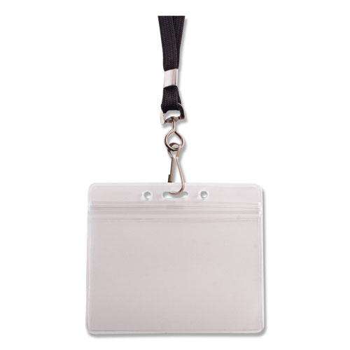 Resealable ID Badge Holder, Lanyard, Horizontal, 3 3/4 x 2 5/8, Clear, 20/Pack