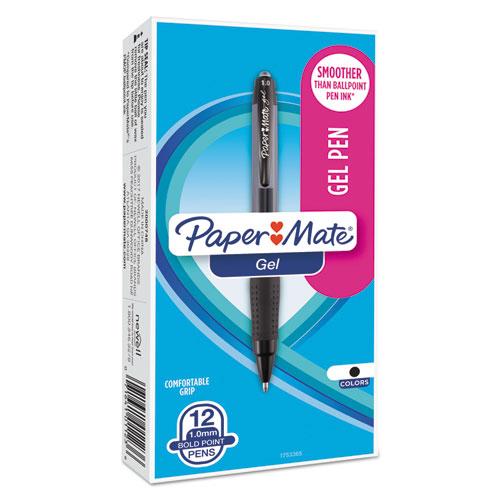 Retractable Gel Pen, Bold 1mm, Black Ink, Translucent Black Barrel, Dozen