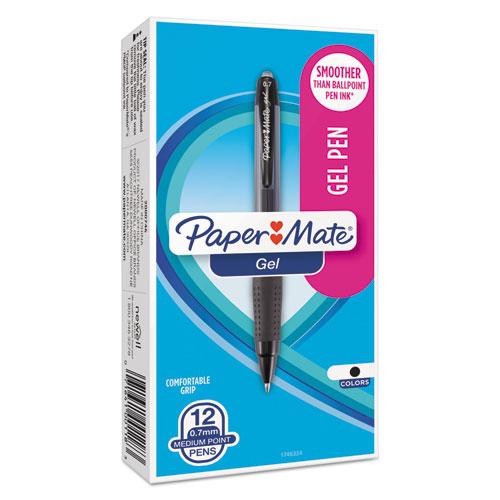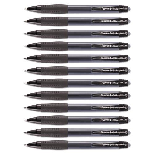 Retractable Gel Pen, Medium 0.7mm, Black Ink, Translucent Black Barrel, Dozen