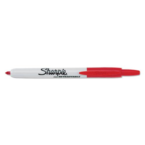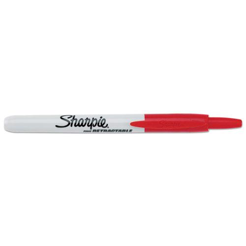 Retractable Permanent Marker, Fine Bullet Tip, Red