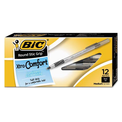 Round Stic Grip Xtra Comfort Stick Ballpoint Pen, 1.2mm, Black Ink, Gray Barrel, Dozen