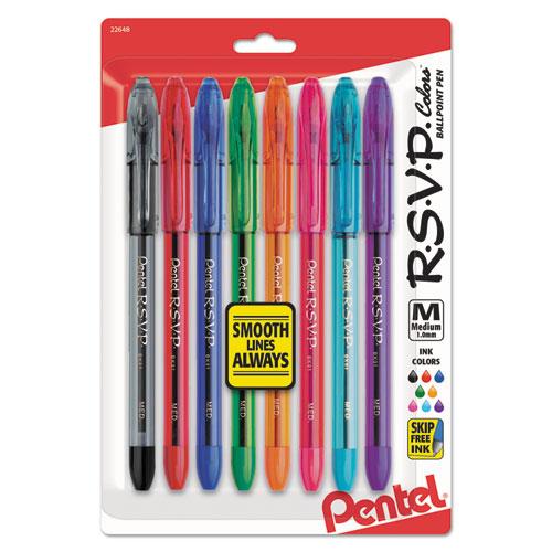 R.S.V.P. Stick Ballpoint Pen, Medium 1mm, Assorted Ink/Barrel, 8/Pack